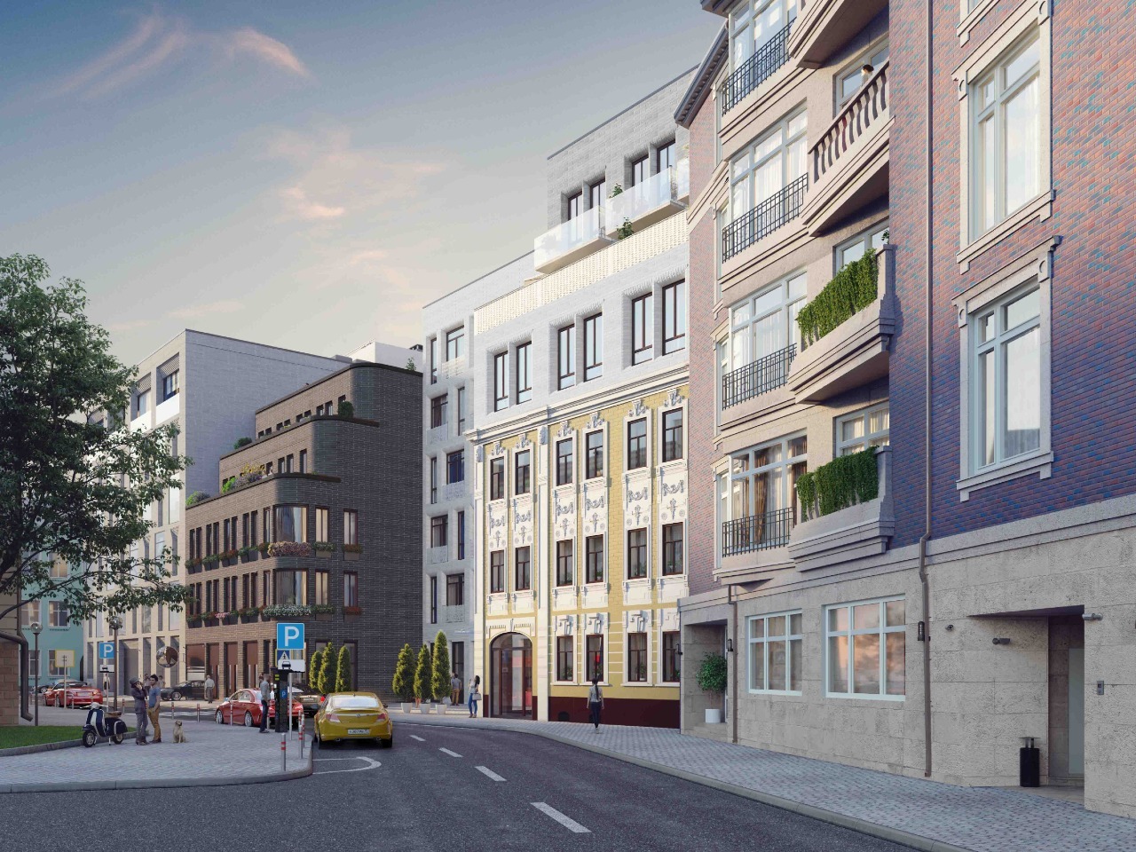Part Rainier с историческим фасадом и лепниной, в центре – Part Albert c белоснежной перламутровой облицовкой и витражным остеклением и Part Mogambo - шоколадного цвета с открытыми террасами.